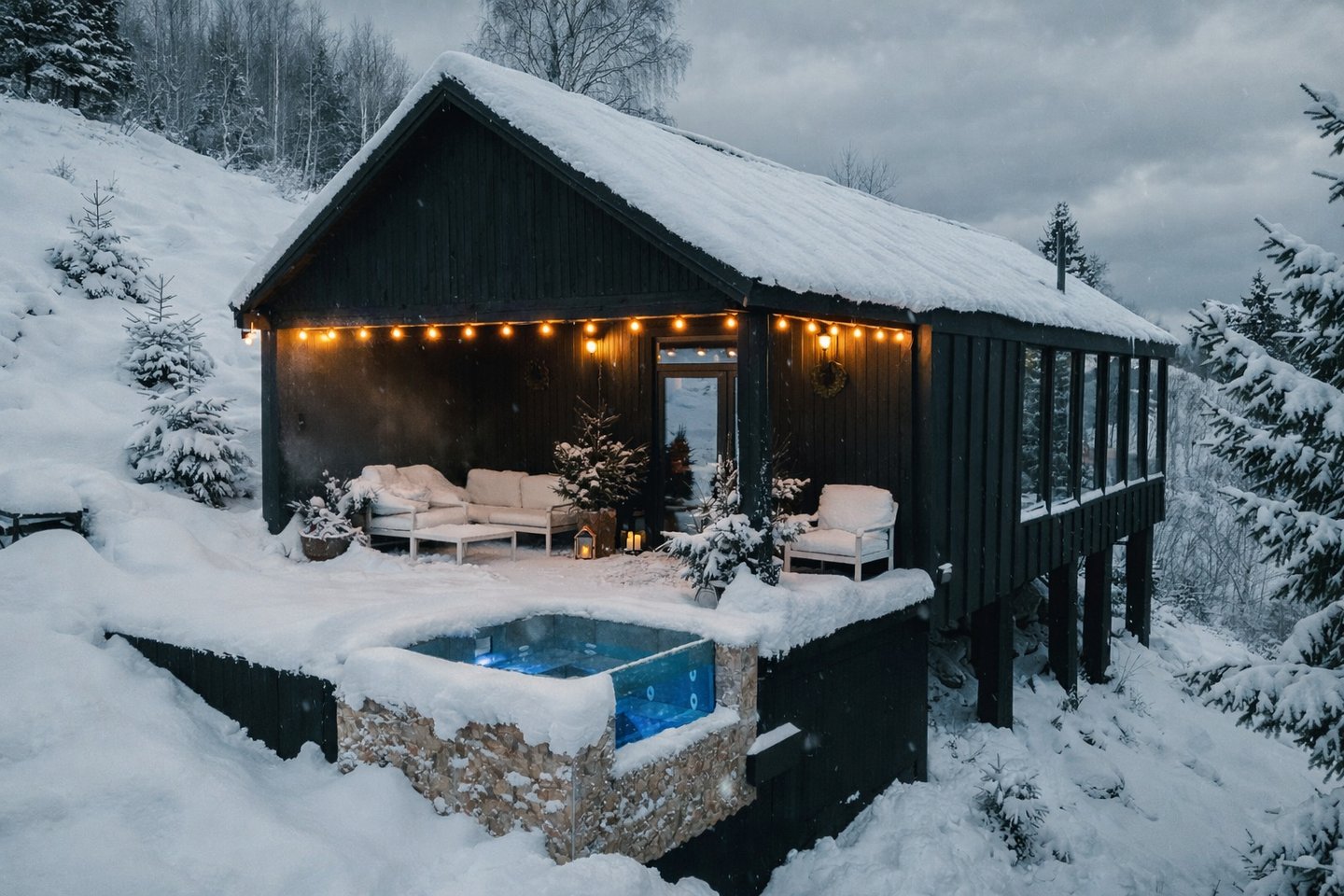 Jacuzzi încălzit pe toată durata sejurului, indiferent de anotimp, fără costuri suplimentare.